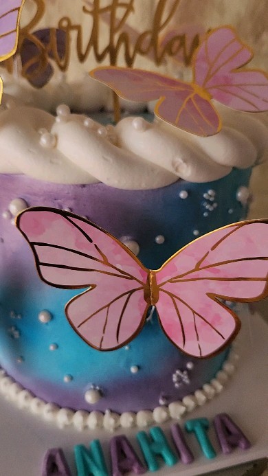 A delightful cupcakes with chocolate. Adorned with fondant and ganache. Crafted with eggless ingredients. A dreamy butterfly theme cake for a lil galβ€οΈβ€οΈ. A chocolate cake with ganqche and whippedcream