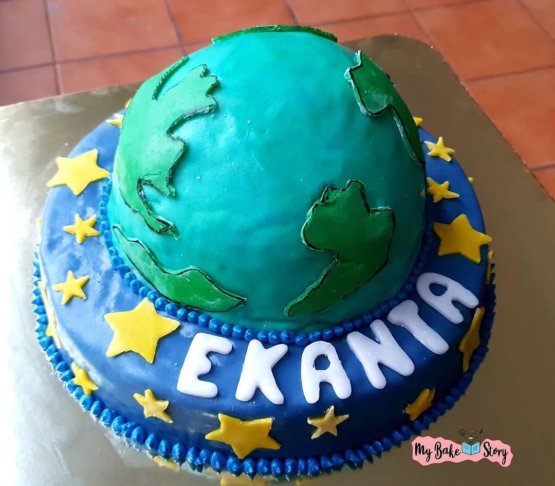 This weekend again gave me the opportunity to explore my creativity…and this one was the 1st one of it..an eggless chocolate Earth cake…with chocolate buttercream frosting and fondant decor…for a sweet boy turning 7 who is in love with Galaxy …maps…Solarsystem… ๐Ÿ˜‹