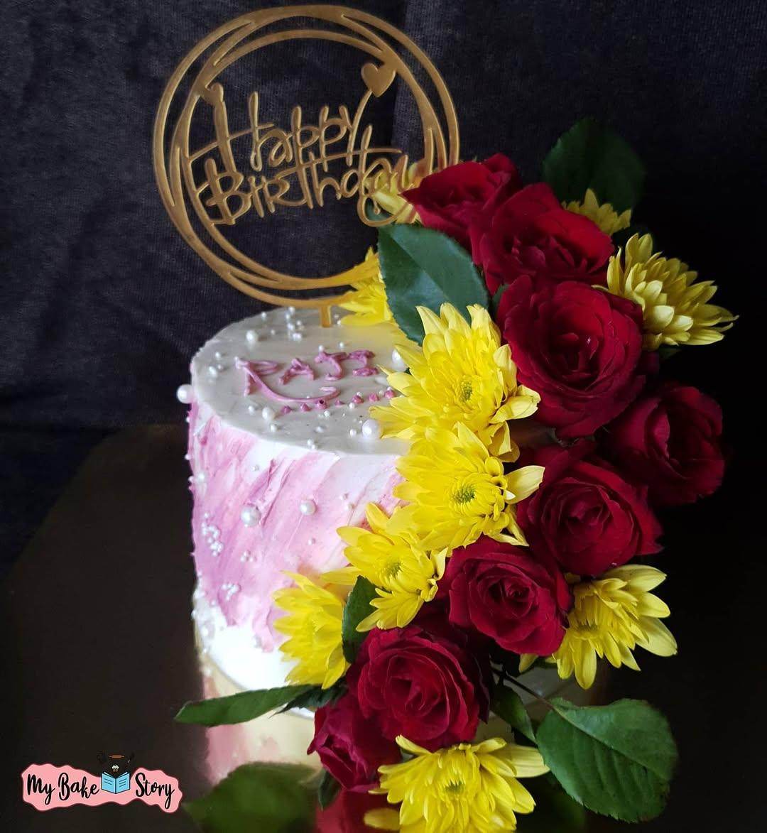A delightful cake with vanilla. Beautifully decorated with buttercream. Perfect for birthday celebrations. Crafted with eggless ingredients. As a baker I am happy that I got oppertunity to bake and