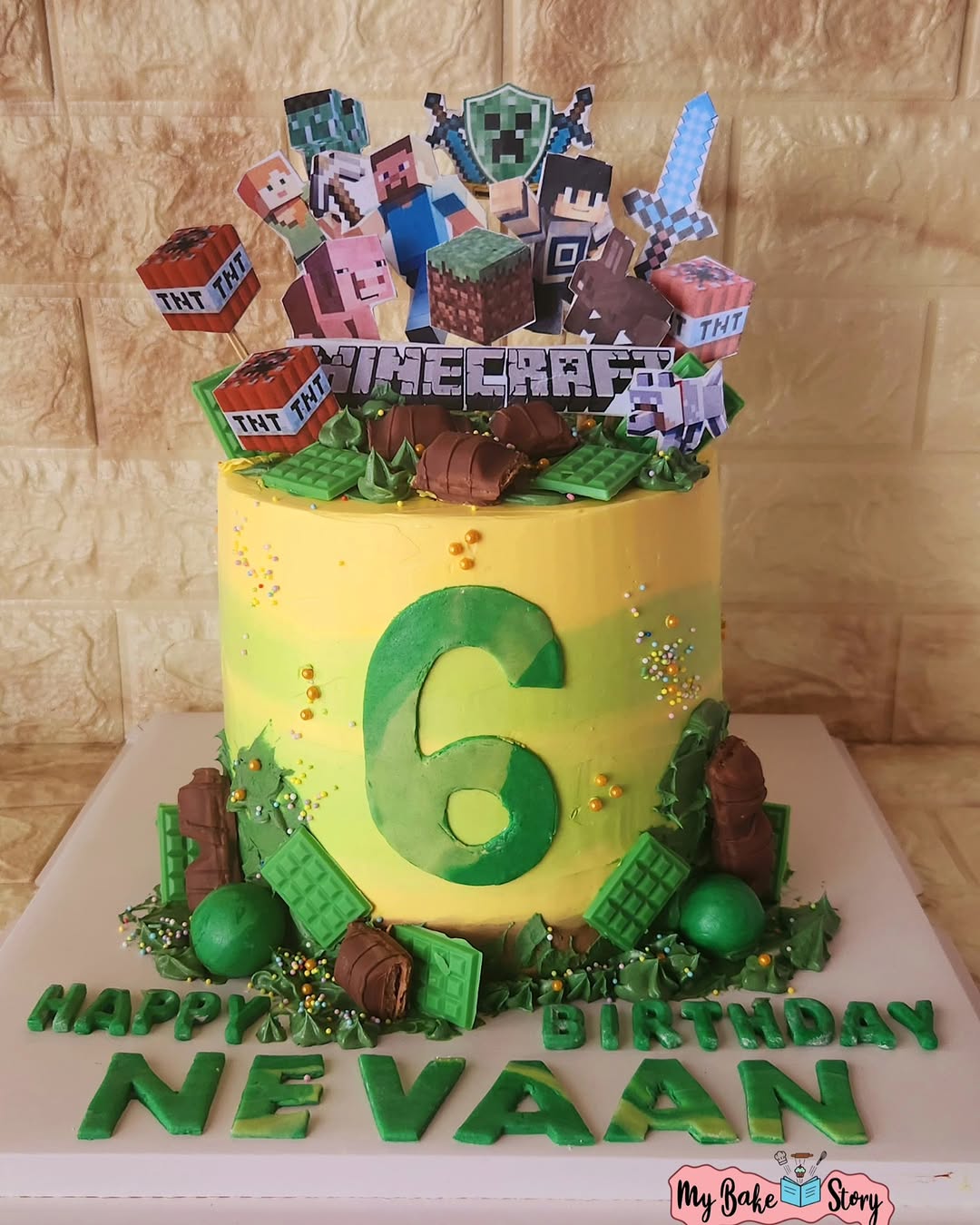 A delightful cupcakes with chocolate. Adorned with fondant and ganache. Crafted with eggless ingredients. A minecraft theme cake for a boy. Chocolate cake with ganache, buttercream and non edible toppers.