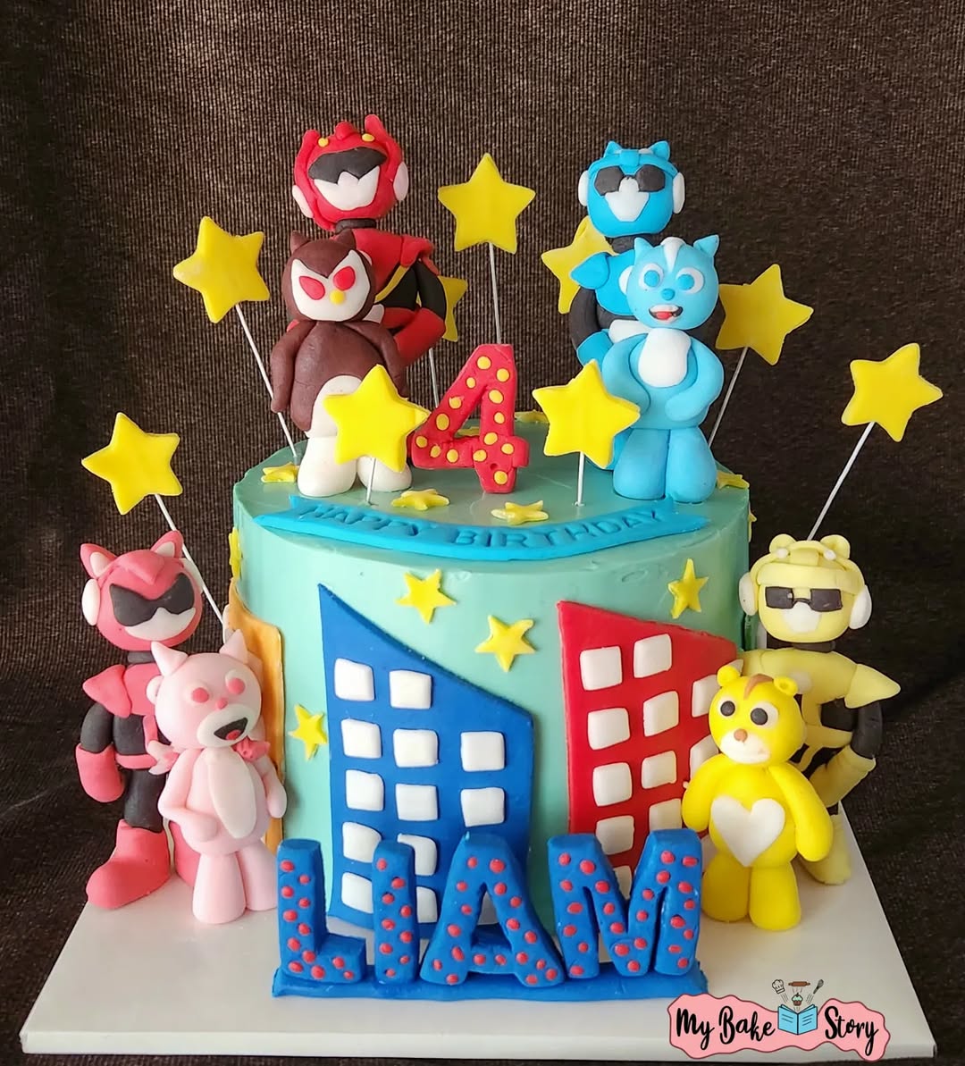 A Miniforce Dinopower theme cake. With all edible toppers.