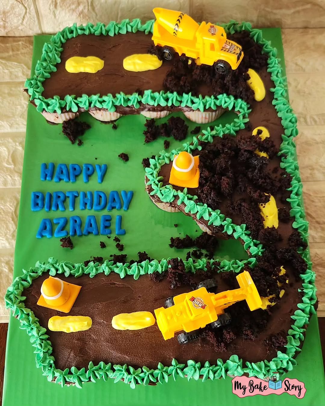 A delightful cupcakes combining chocolate and vanilla. Adorned with fondant and ganache. Crafted with eggless ingredients. A pull apart cupcake numerical cake for a lil boy. With a mix of