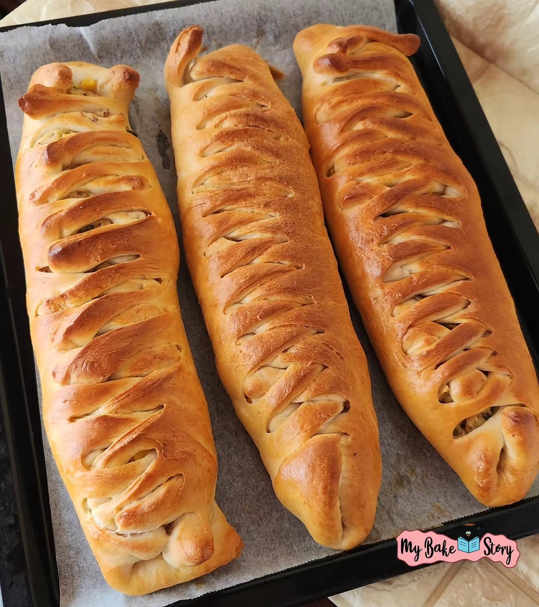 A beautifully handcrafted baked creation made with love and attention to detail. A shreded chicken stuffed braided bread. A bread I made for last year christmas eve…I hope I keep