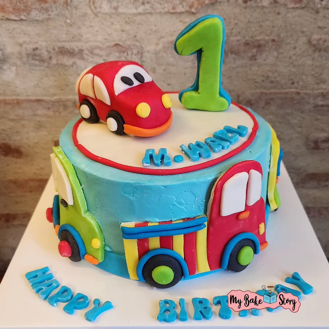 A delightful cake. Beautifully decorated with fondant. Perfect for birthday celebrations. A Mario car theme cake. Though the car toys has been put during the cake cutting. . . .