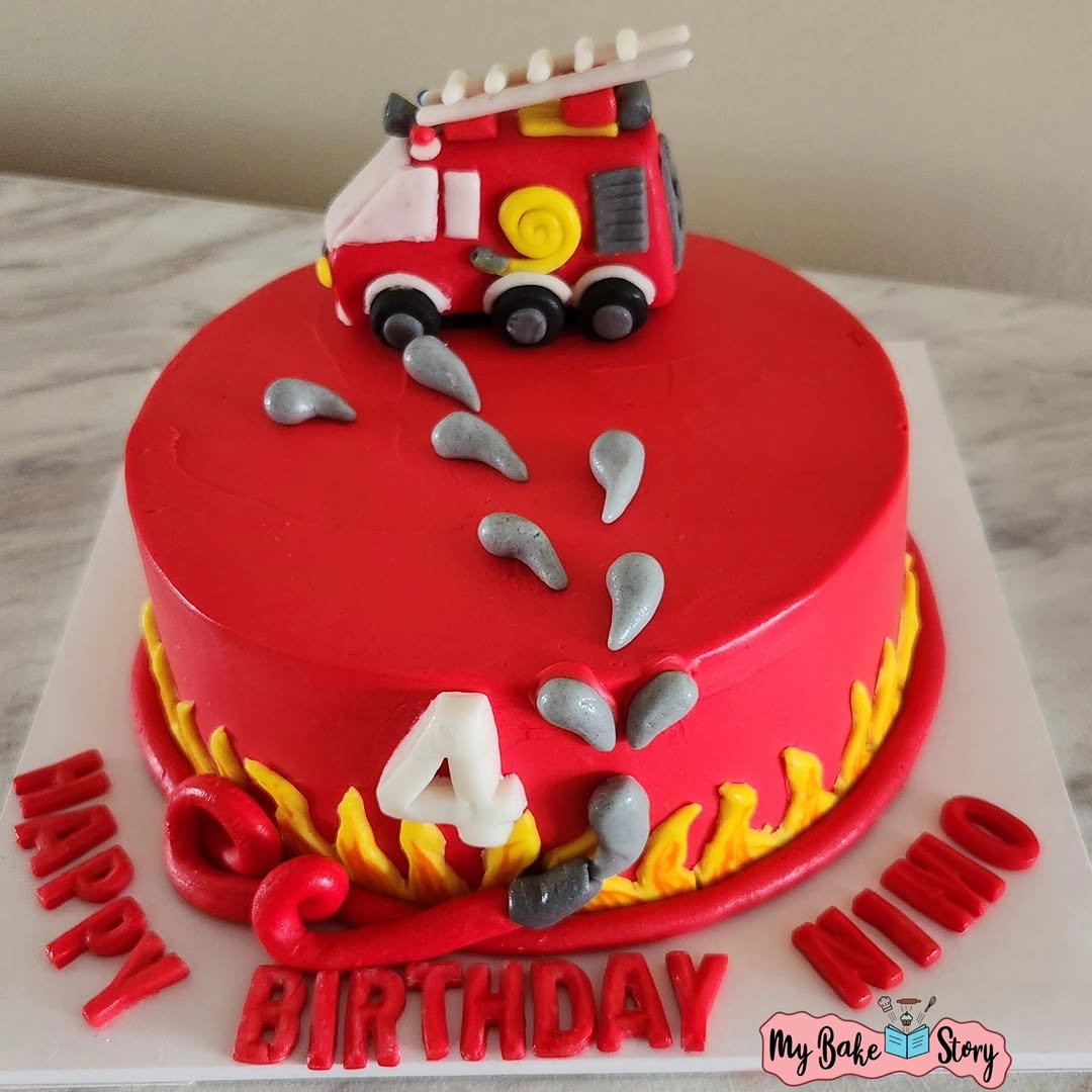A delightful cake with chocolate. Adorned with fondant and ganache. A fire truck theme cake for a young firefighter😊 . . . . — #firetruckthemecake #buttecreamfrosting #chocolatecake #chocolateganachefrosting #fondantcake #fondantcakebangkok
