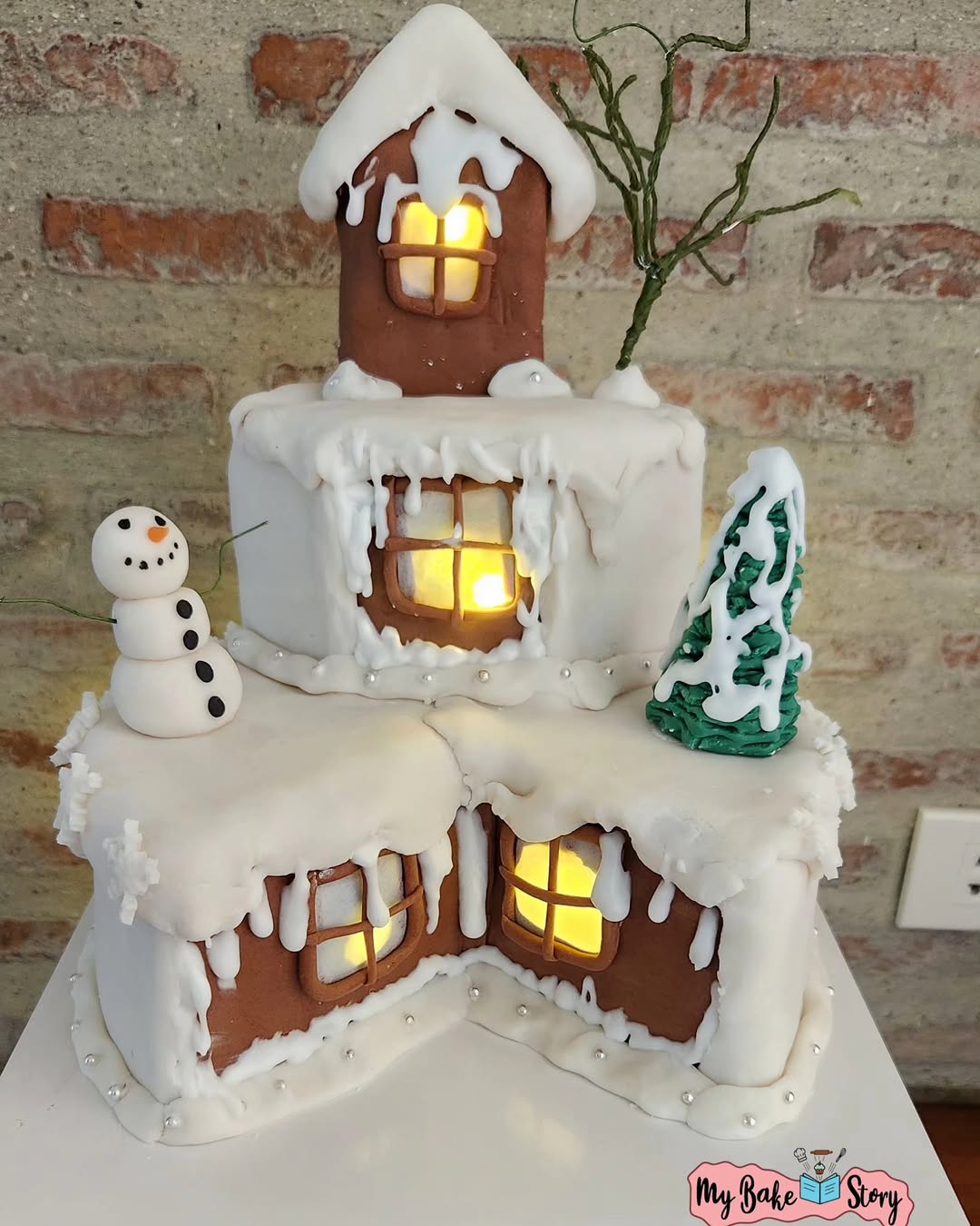 A delightful cake with chocolate. Adorned with fondant and ganache. Perfect for birthday celebrations. “A christmas theme house cake ,which should be lighted up with real lights”….when my client send
