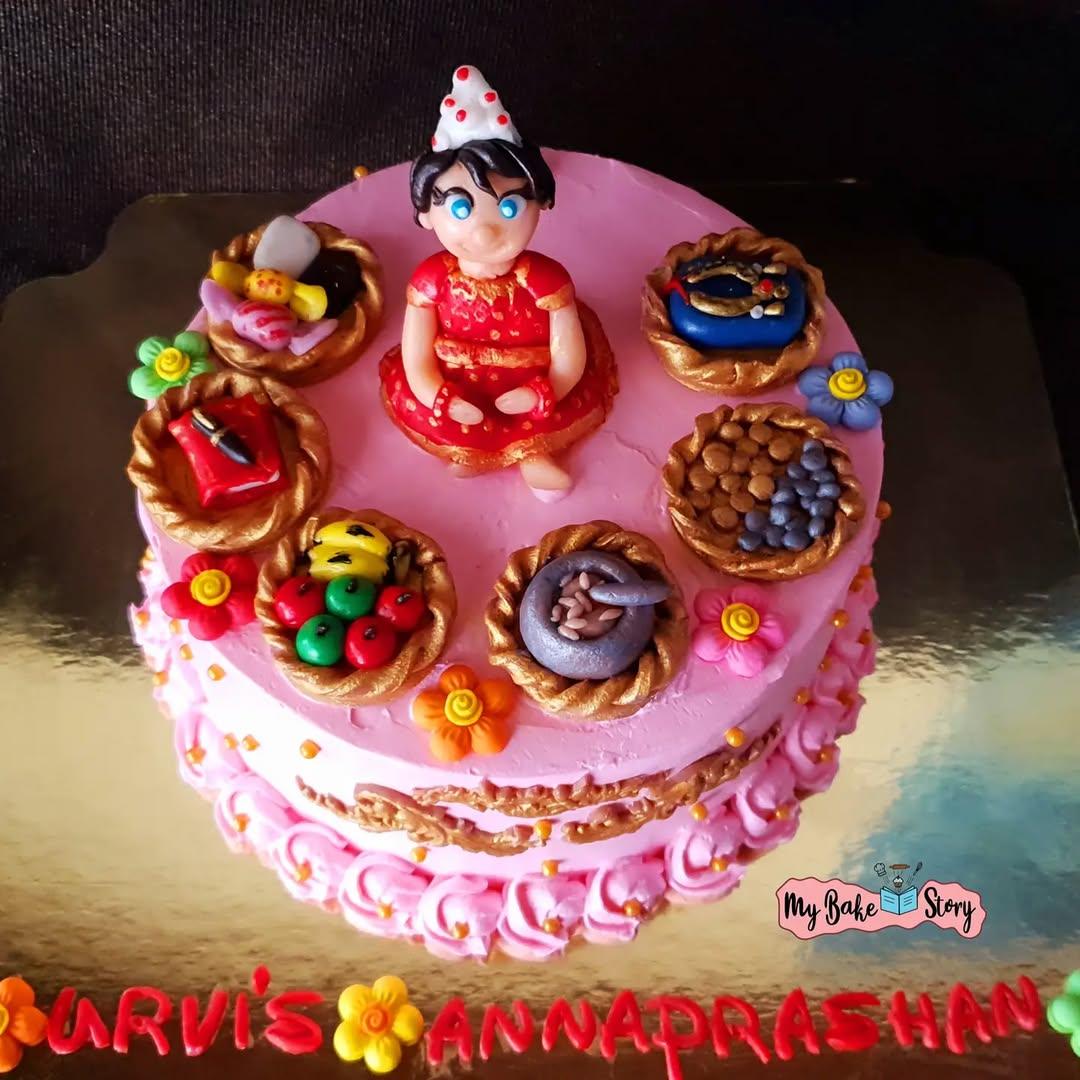 A delightful cupcakes with chocolate. Beautifully decorated with whipped cream. An Annaprashan ( rice eating ceremony) cake for a lil princess….lucky to got another chance to make a cake releted