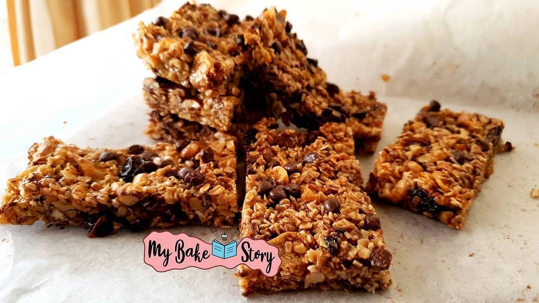 A beautifully handcrafted baked creation made with love and attention to detail. — #mybakestory #homemade #granolabars #cornflakes #oats #dryfruits #chocolatechips