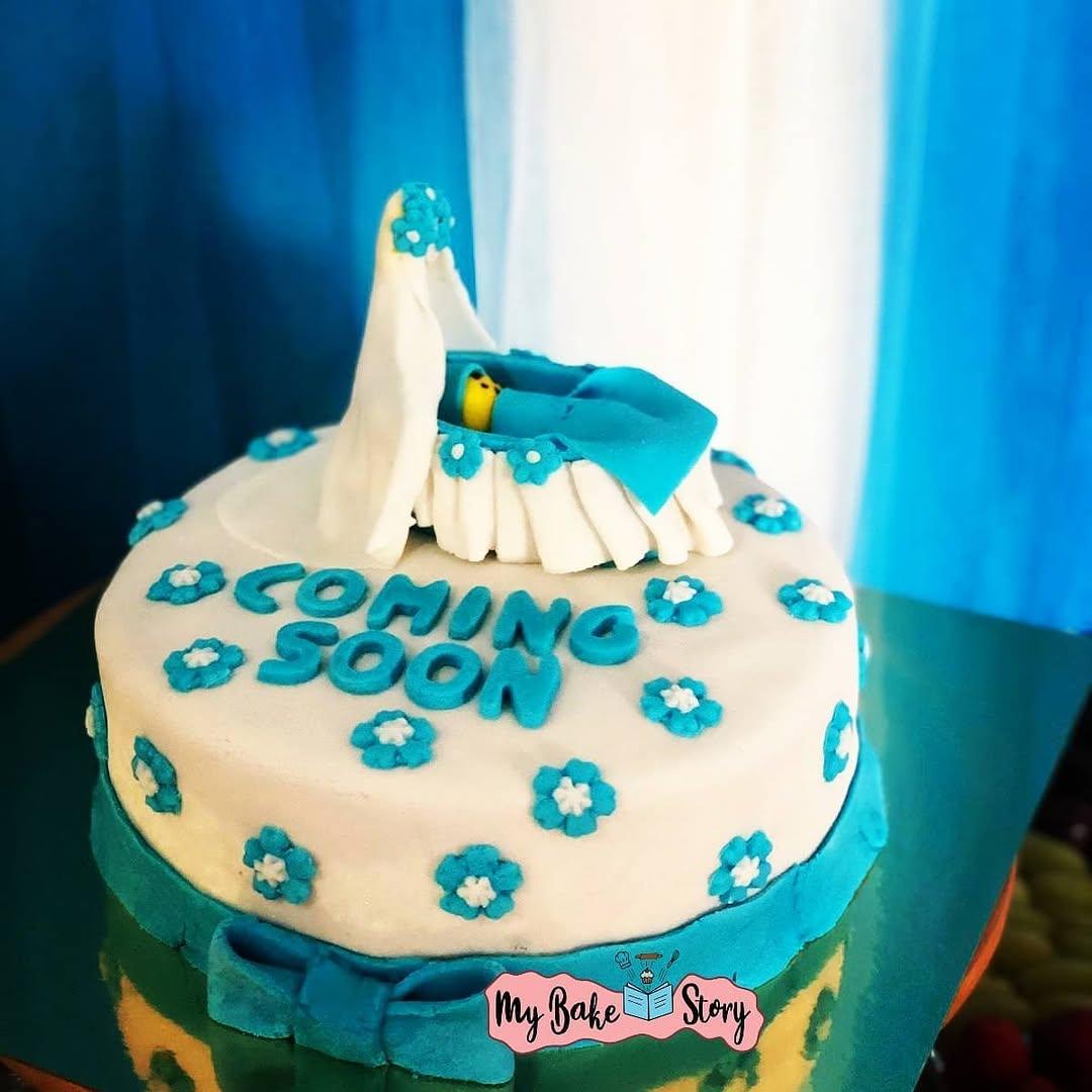 A delightful cake. Beautifully decorated with fondant. Perfect for baby shower celebrations. — #mybakestory #babyshowerparty #babyshowercakesforboys #fondantcakes