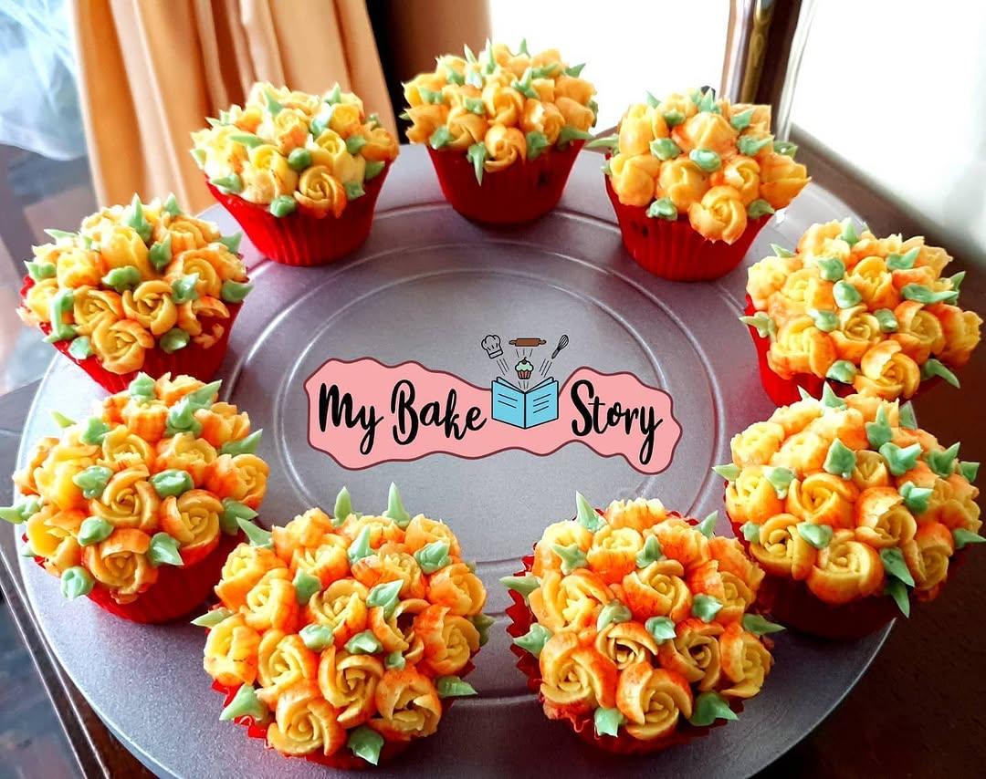 A delightful cupcakes. Adorned with buttercream and floral decorations. — #mybakestory #vanillia #cupcakes #buttercream #buttercreamflowers #buttercreamroses #russiantipsflowers
