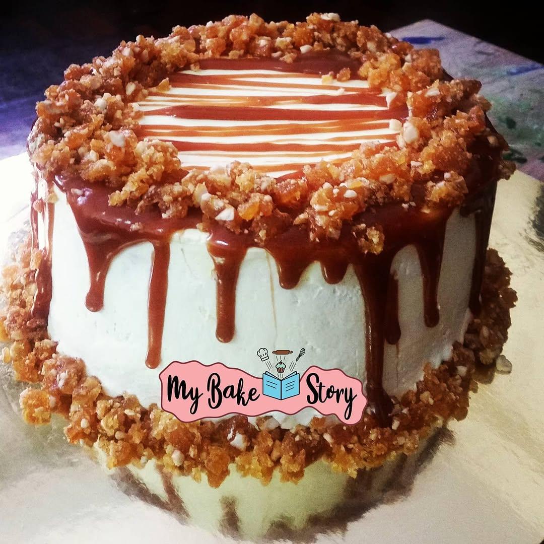 A delightful cake with caramel. Crafted with eggless ingredients. — #mybakestory #egglessbaking #egglesscake #butterscothcake #caramelsaucefilling