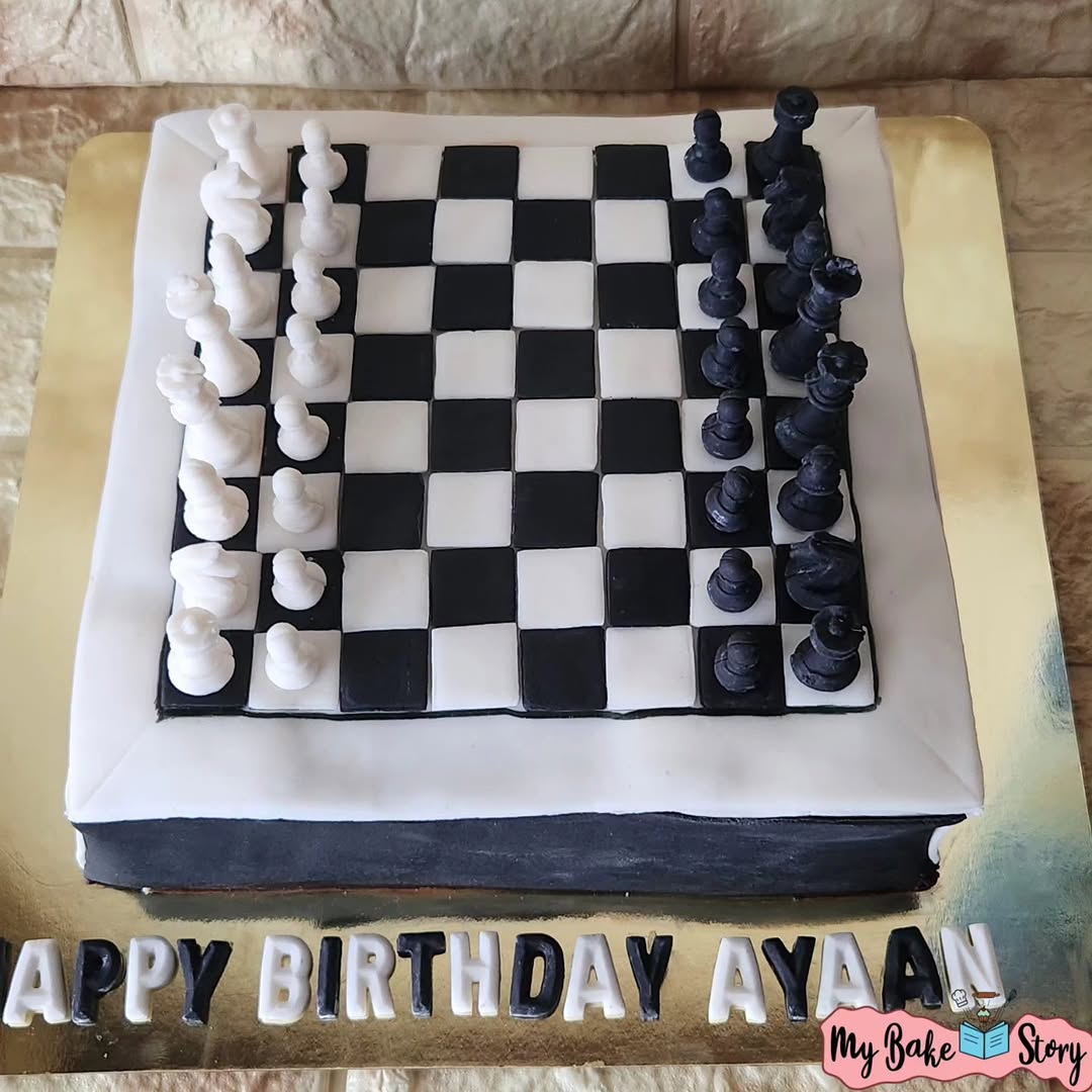 A delightful cupcakes with chocolate. Adorned with fondant and ganache. Crafted with eggless ingredients. A chessboard cake for lil chessmaster. . . . . . . — #chessboardcake #fondantcake #chocolatecake