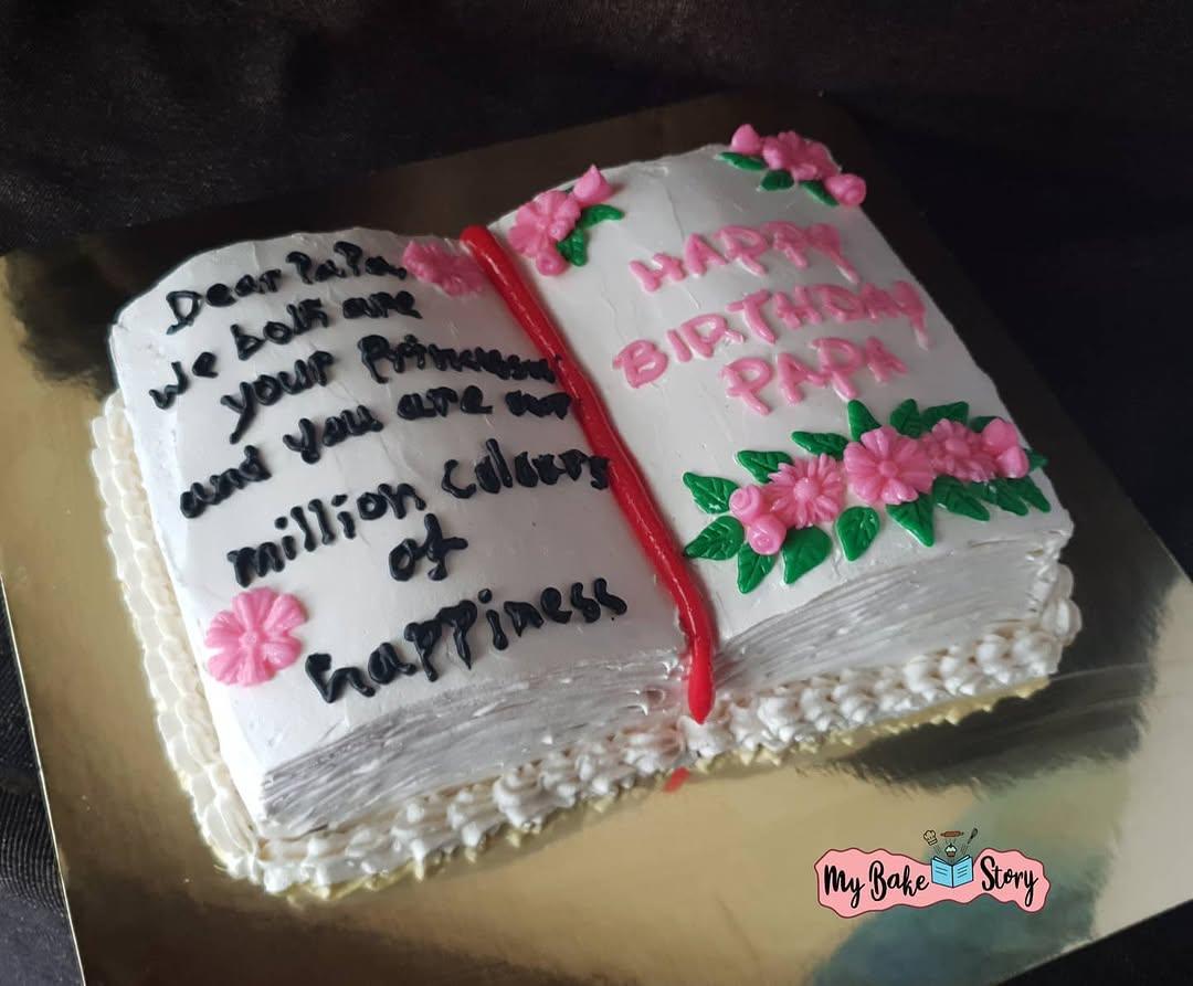 A delightful cupcakes with chocolate. Beautifully decorated with whipped cream. Crafted with eggless ingredients. Again a open book 3D cake for a dad with a message from his both princess…but