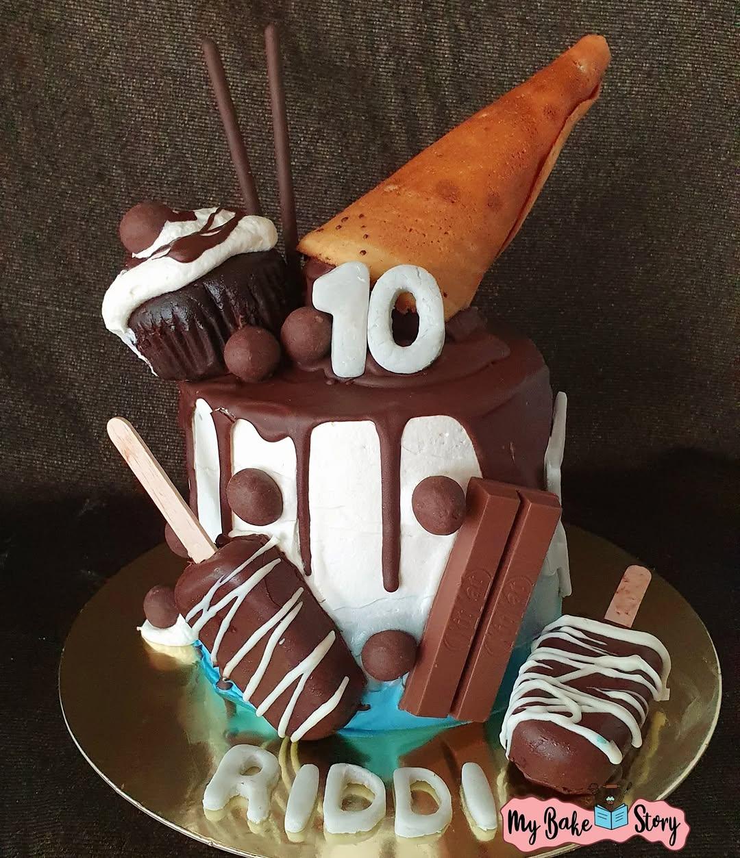 A delightful cupcakes combining chocolate and vanilla. Adorned with whipped cream and drip effect. Crafted with eggless ingredients. A vanilla cake with whippedcream frosting with all eggless choco goodies on