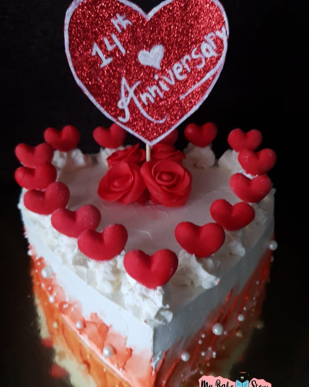 A delightful tart with chocolate. Adorned with fondant and whipped cream. Perfect for anniversary celebrations. Crafted with eggless ingredients. A simple heart shape pinaaple cake with whippedcream frosting filled with