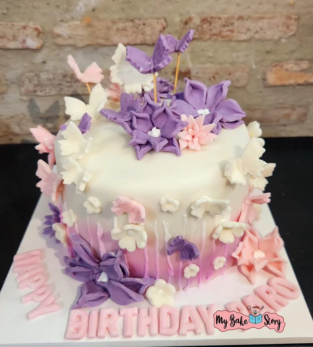 A delightful cake combining chocolate and vanilla. Adorned with fondant and ganache. Perfect for birthday celebrations. A cake created with flowers and butterflies. — #vanillacake #chocolateganachefilling #fondantcakebangkok #bakersinbangkok #bangkokbakes #bangkokbaker