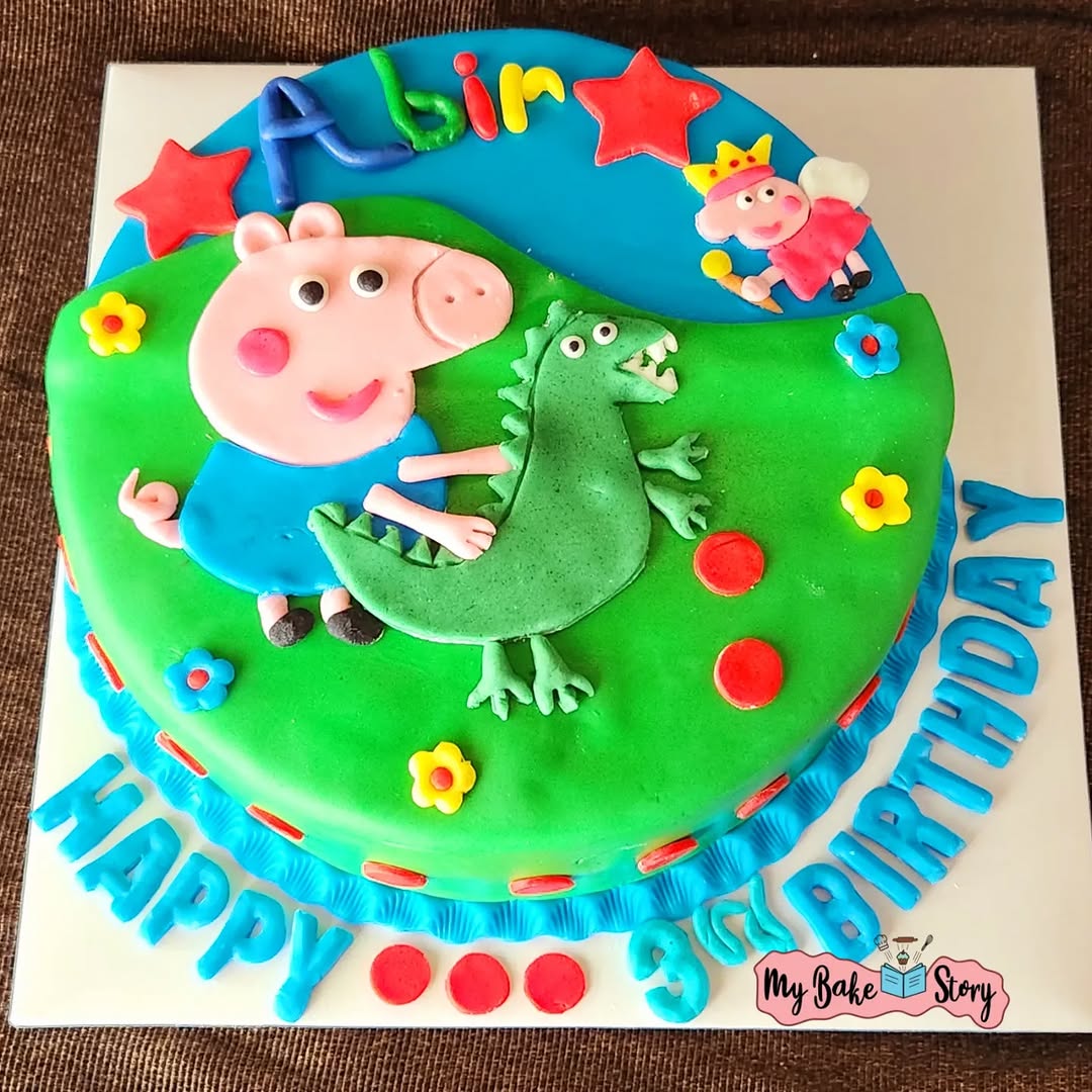 A delightful cupcakes with chocolate. Adorned with fondant and ganache. Crafted with eggless, vegan ingredients. A George Pig cake for a lil boy…earlier I used to think all of them