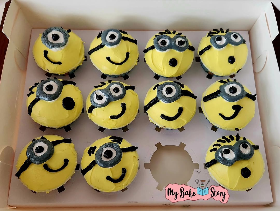 A delightful cupcakes with chocolate. Adorned with fondant and ganache. Crafted with eggless ingredients. Minion cupcakes with only whippedcream. . . . . . . — #minioncupcakes #egglesschocolatecupcakes #whippedcreamfrosting #chocolateganachefrosting