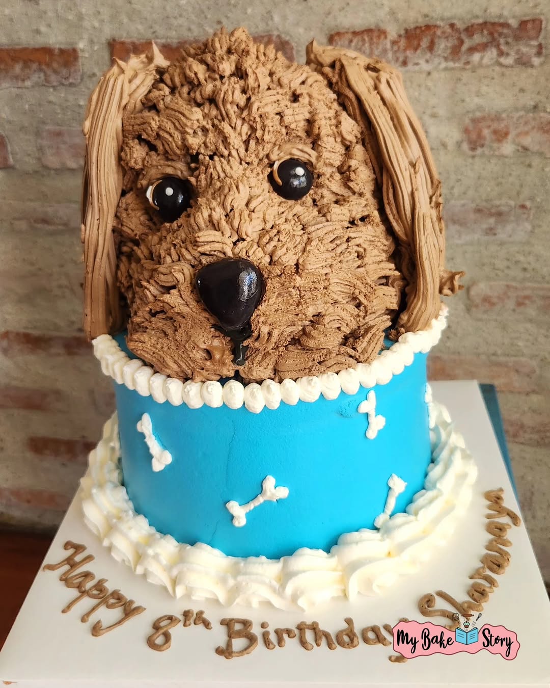 A delightful cupcakes with chocolate. Adorned with fondant and ganache. Crafted with eggless ingredients. Sculpting a 3D dog face from cake. . . . . . . — #3dcakesculpting #dogfacecake