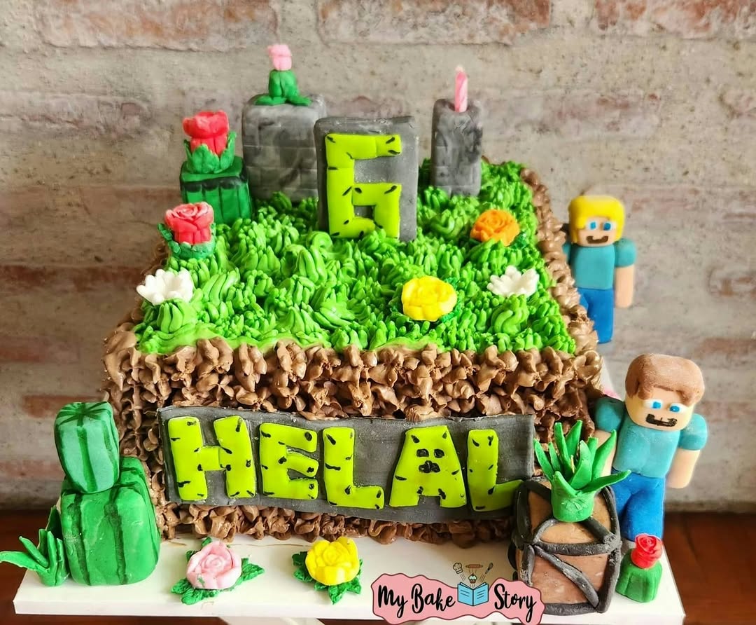 A delightful cake with chocolate. Beautifully decorated with whipped cream. Perfect for birthday celebrations. Minecraft themed chocolate cake with whipped cream frosting. – – – — #bangkokbaker #bangkokbirthdaycake #birthdaycakebangkok #minecraftcake